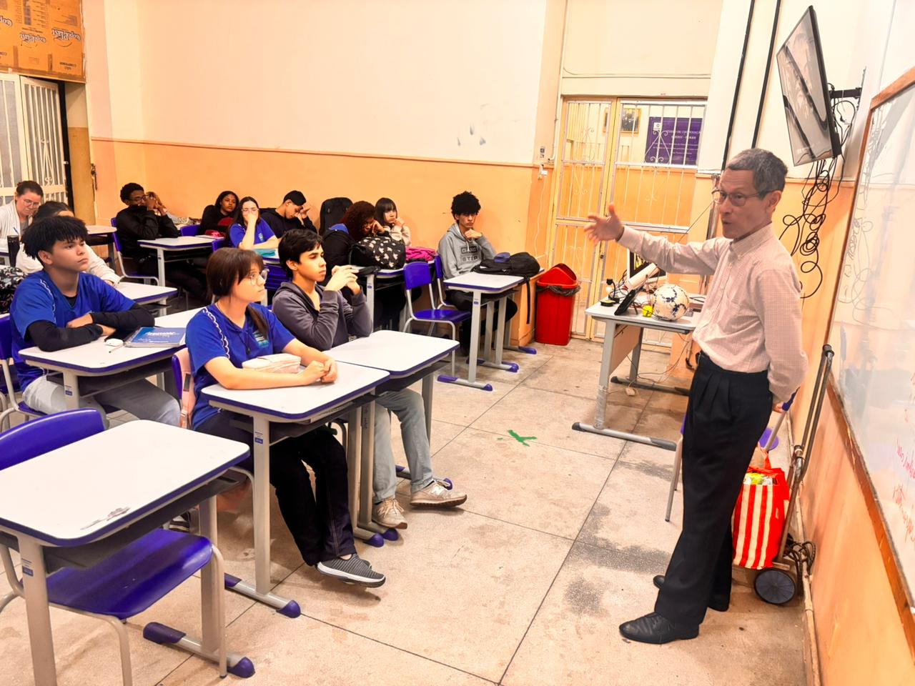 No último dia 09 de outubro, o Comandante Hideo Miyoshi apresentou a palestra “A Evolução da Navegação no Tempo” para os alunos do 1º ano do Curso Técnico em Transporte Aquaviário (CTTA), articulado com o Ensino Médio, fruto da parceria entre a Fundação de Estudos do Mar (FEMAR) e a Secretaria de Estado de Educação do Rio de Janeiro (SEEDUC RJ).