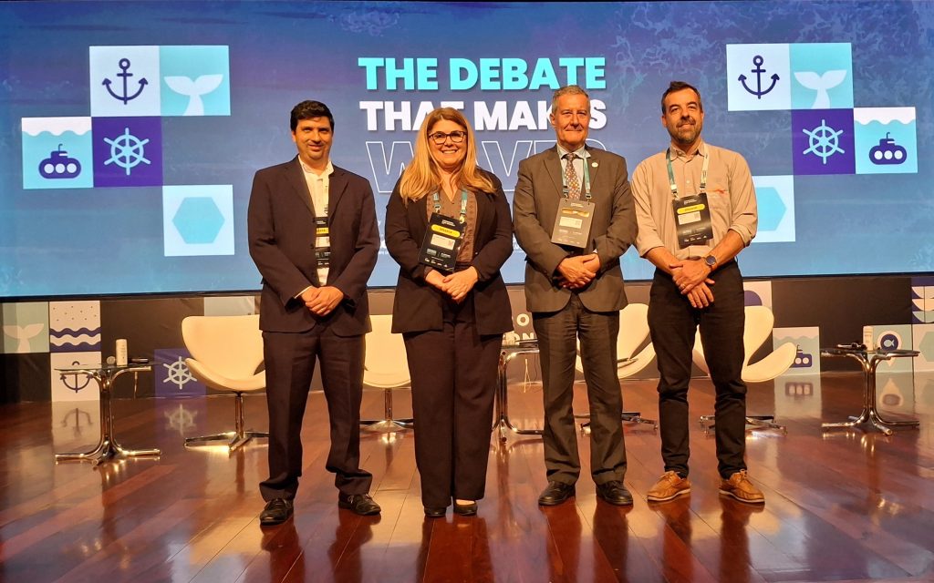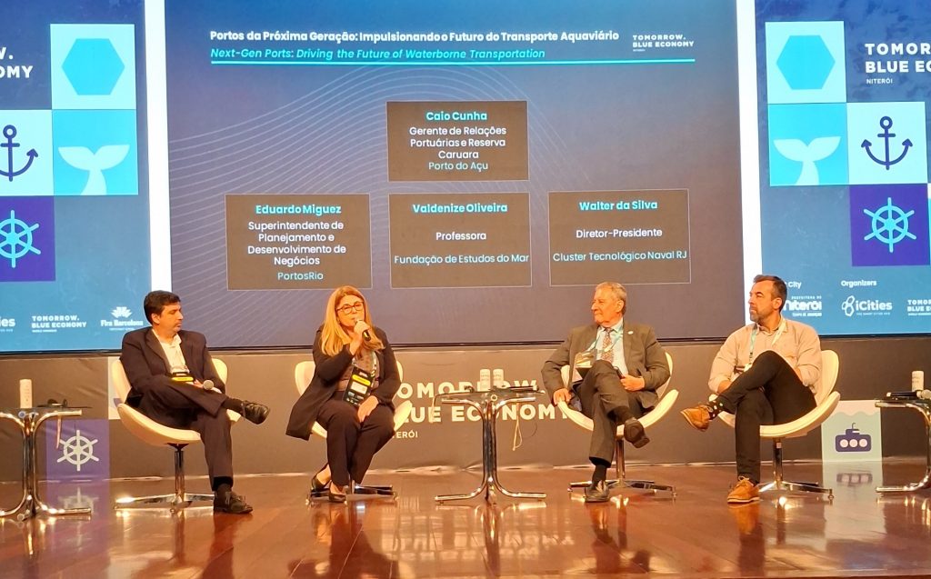 No período da tarde, a Prof.ª Valdenize participou como palestrante no painel “Portos da Próxima Geração: Impulsionando o Futuro do Transporte Aquaviário”, que explorou o crescente papel do oceano na transição energética global. A discussão mostrou como a Economia Azul vem abrindo caminhos para energias renováveis — ondas, marés, correntes marítimas e vento offshore — e como essas fontes estão se convertendo em soluções concretas para um futuro mais limpo. O painel contou também com a participação de Walter Lucas da Silva (Cluster Tecnológico Naval RJ) e Eduardo Miguez (Rio Negócios), com moderação de Caio Cunha (Porto do Açu).