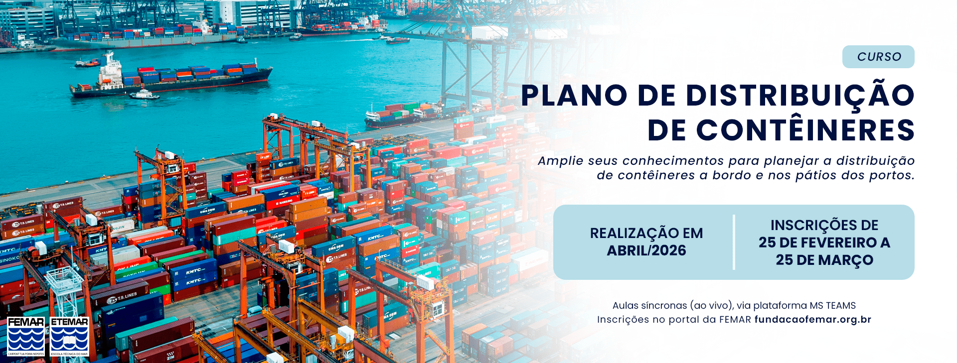 O Curso Plano de Distribuição de Contêineres (PLANNER) visa proporcionar ao aluno os conhecimentos básicos no planejamento de distribuição de contêineres a bordo e nos pátios dos portos e é destinado àqueles que já atuam ou pretendem atuar em empresas das áreas marítima e portuária.