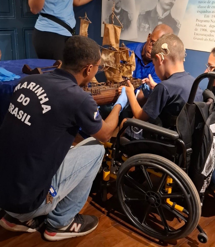 A programação começou com uma visita guiada ao Museu Naval. Em seguida, os integrantes seguiram pelo Espaço Cultural da Marinha, proporcionando uma experiência rica em aprendizado, cultura e inclusão.